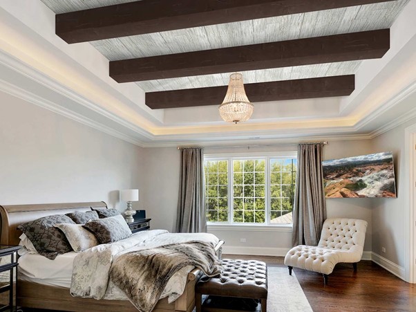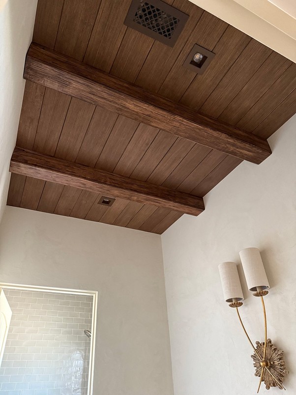 - Decorative plywood beams provide the same visual effect but are lightweight and installed purely for aesthetic purposes.