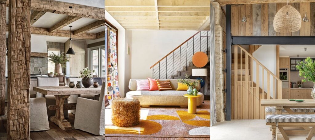 Wood beams aren’t just for traditional homes. In modern spaces, clean-lined beams with smooth finishes or lighter stains add warmth without overwhelming the design. They create striking contrast against white ceilings, concrete floors, or expansive glass walls.
