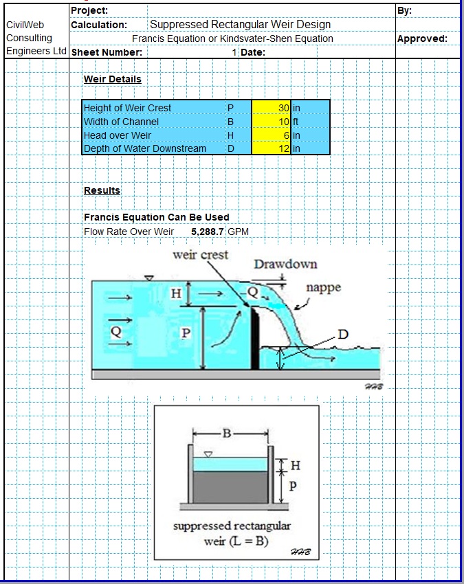 How Does the CivilWeb Suppressed Rectangular Weir Calculator Spreadsheet Work?