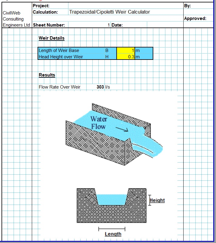 Buy the CivilWeb Trapezoidal Weir Calculator Spreadsheet now for only £19.99.